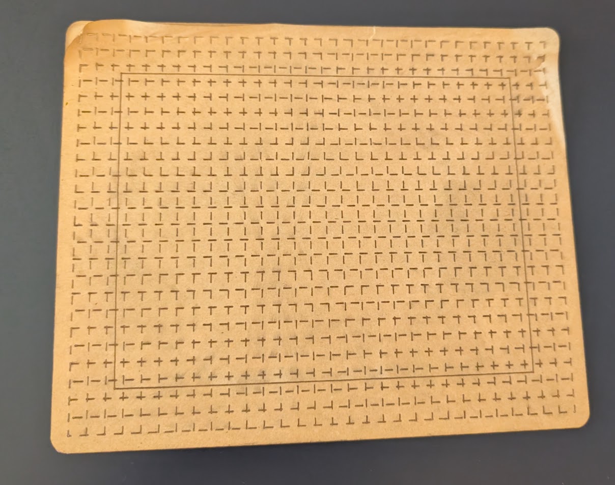 So I decided to just use the perforation mode in LightBurn to make the grid-lines dashed. They were 1/4” apart, and the setting was in mm so I lazily did 3mm (approximately but not quite 1/8”).