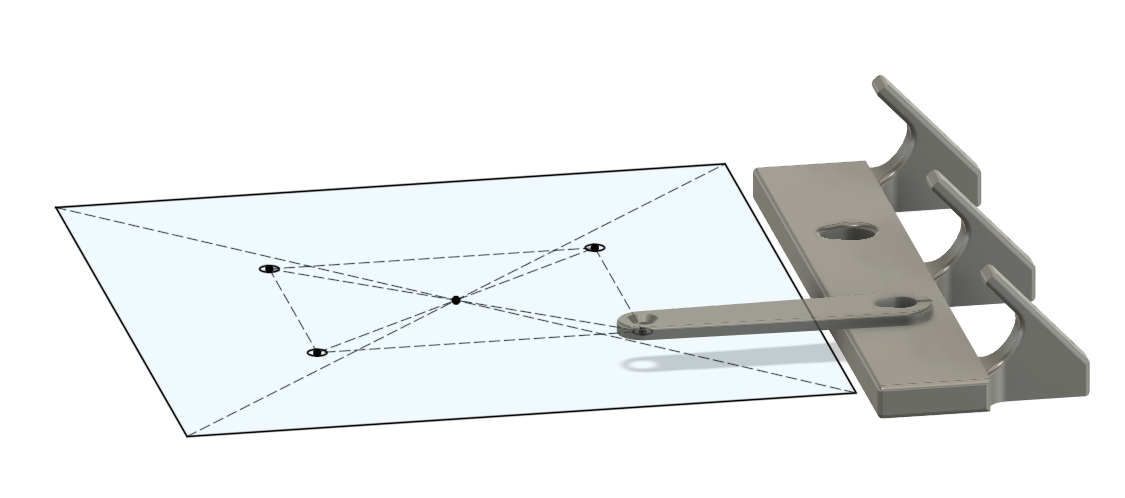 I wanted to be able to print without supports, so I avoided overhangs by splitting the design into multiple pieces. This also helped me iterate because I could replace and reattach a new bottom part without having to completely unscrew and remount the connectors. The connectors have a slot to make them slightly flexible for a good press-fit.